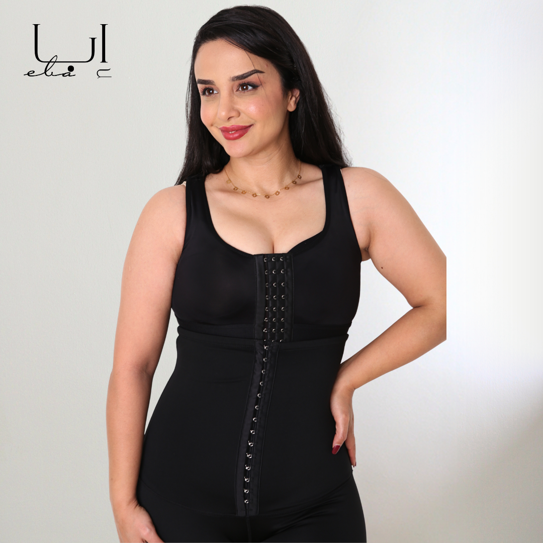 تمنحكِ ثباتًا ممتازًا ومظهرًا مشدودًا بفضل الأشرطة المتقاطعة التي تدعم الظهر وتُحسّن الوقفة.